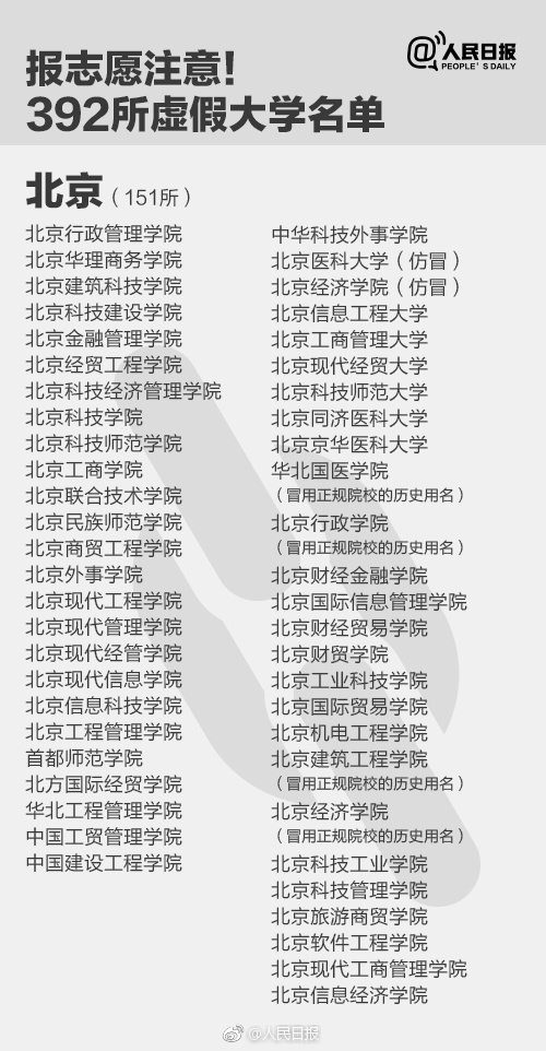 (原题为《转发提醒!全国392所野鸡大学曝光名单》)