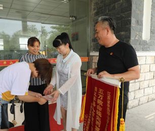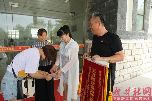 2018年7月3日,安徽省宿州市埇桥区的王惠、王纪文妯娌俩,连连向丰县正能量公益发展中心党支部副书记、理事长万利忠鞠躬致谢,并把一面写着“五万救命钱失而复得彰显正能量、情义丰县人拾金不昧堪称好党员”的锦旗,送到丰县华山镇党委书记徐国斌、镇人大主席尹亚东、党委副书记高源和万利忠、丰县正能量公益妇联主席王秀丽手上。