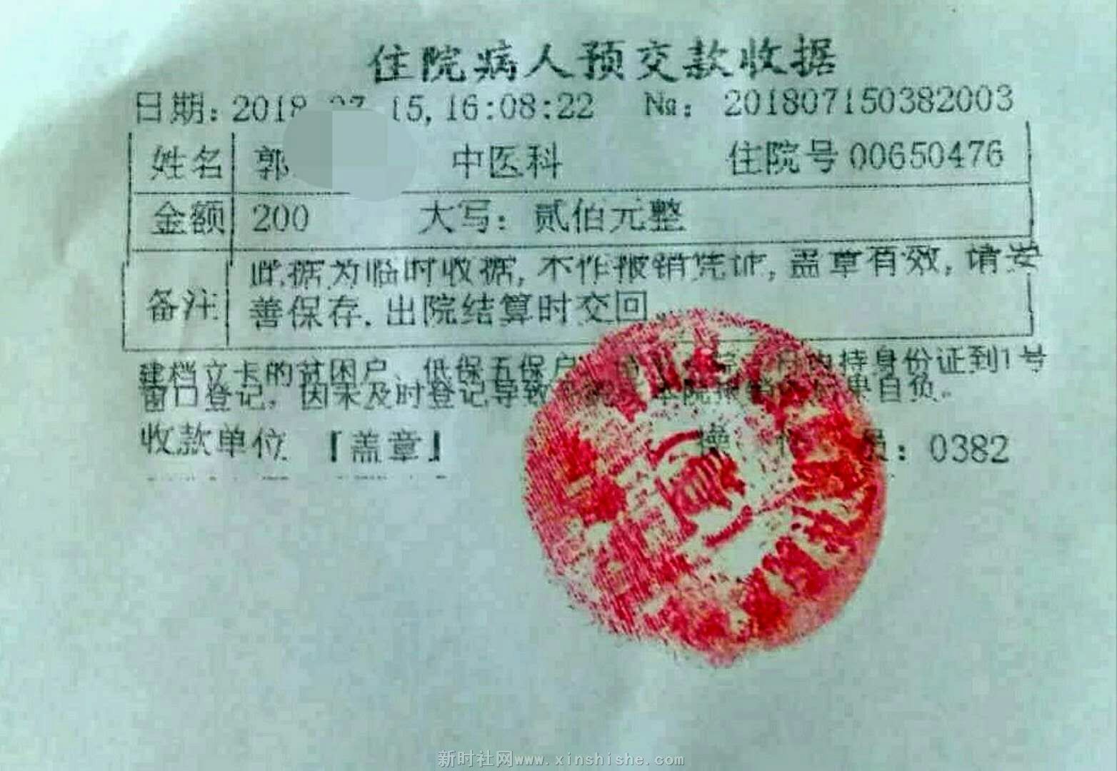 中国新闻时讯通讯社河南报道:【记者马进伟 陈运发】七月十九日上午,鲁山县人民医院申坤阳医生从兜里拿出一张收费凭据交给了患者郭某手中,笔者获悉这是患者郭某送给申医生的一个特殊红包。面对这一特殊的红包,申医生已经婉言谢绝了多次,再三推脱无法拒绝后为消除患者家人的顾虑,申医生只好暂时收下“红包”,最终将账入到了患者的住院押金里,当将发票交到患者手中时,并告诉她:您的深情厚谊我心领了,不管怎样,我都会精心治疗和悉心照顾。
