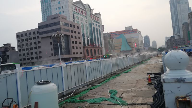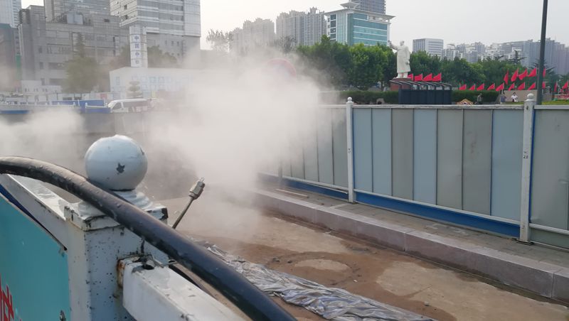 (杨等平报道)笔者在路过中山路时,看到道路两侧施工围挡上雾气飘飘。走到在现场看到,正在进行建设施工的路段都安装了这种降尘雾化器,扬尘超标时 自动实施喷雾降尘。和以往的人工洒水降尘相比,智能化扬尘管控设备的安装也节约了人力成本。