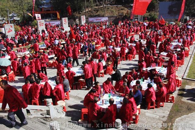 【中国新闻时讯社特约记者陈运发 陈思雨德安报道】(图梦泽晨歌等)2018年10月28日,由江西省九江德安县人民政府主办、义门陈联谊总会、义门陈文化研究会承办、厦门千凡文化艺术有限公司总策划的2018义门陈文化旅游节在江西德安义门陈氐文化广场举行。河南信阳陈氏文化研究会会长陈登象、秘书长陈新文,外联部长陈思雨带领信阳代表队应邀同去江西德安参加盛会。来自近多个国家地区的嘉宾、组织社团、陈氏明星、名人后裔、宗亲代表 、企业家、高管精英、文化学者、艺术人士等五千多名义门陈后裔参加了此次活动。各界人士共襄盛举。参会超过5000多人,参观人数多达数万人。唐宋时的德安义门陈村,是一个神奇的村庄,它以孝义传家,同居三百多年,人数最多时达到3900余口,历时332年聚族而居。同炊共食,在中国的家族史上是独一无二的,成为世界家族史奇观。今天,2018义门陈文化旅游节再现当年奇观,同炊共食达到500余桌,5000多人再现当年“击鼓传餐,回家吃饭”的家族史文化奇观。这是一次情怀满满的探寻,历史重现寻根溯源家风传承,文化交流艺术展示商业合作,在这里深度融合携手未来。
