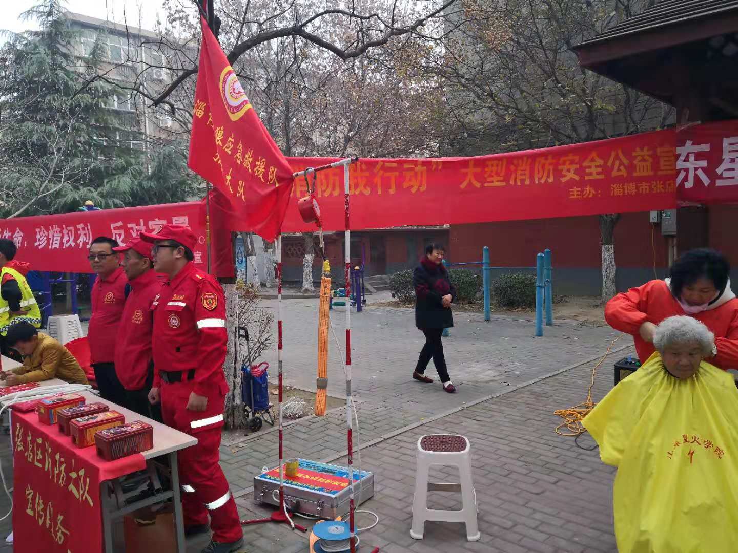 淄博张店消防宣传服务队、淄博红狼应急救援队走进社区宣传消防知识