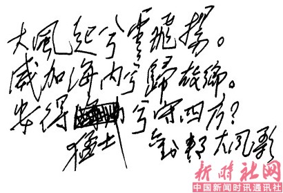 单就文字功底说,从举义之初的告沛城父老书,到入关破秦的约法三章,从号令天下征讨楚霸的战斗檄文,到语重心长情真义切的敕太子书,无不言简义赅,或振聋发聩,或一语中的,或长于鼓励,或富于感召,显示出非凡的思想和文化底蕴。至于他那龙掷虎跳大气浑成悲壮苍凉的《大风歌》,文意飞扬气魄雄壮而又道出无力回天憾恨的《鸿鹄歌》,更是彪炳史册,成为千古绝唱。著名文学评论家刘勰就称誉“《大风》、《鸿鹄》之歌,亦天纵之英作也。”唐代诗人林宽《歌风台》诗盛赞道:“莫言马上得天下,自古英雄尽解诗。”毛泽东说《大风歌》“写得很好,很有气魄”,毛泽东的女儿李讷到沛县汉文化景区参观时,曾手抚《大风歌碑》深情追忆说,《大风歌》是父亲当年在马背上教会她的第一首诗。