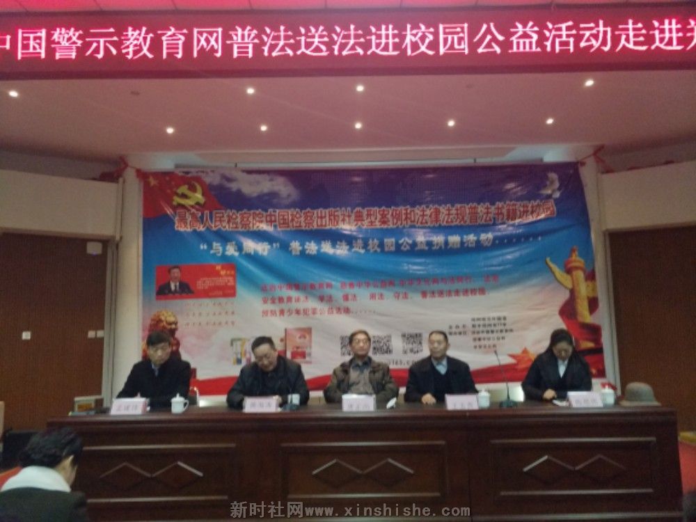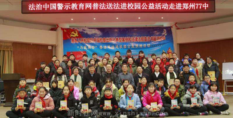 【中国新闻时讯社河南讯】(特约记者陈运发黄海涛)为了加强学生的法律启蒙和法律常识教育,牢固树立崇尚法律、遵守法律的意识,有效预防未成年人违法犯罪,切实加强学校普法工作,由法治中国警示教育网、慈善中华公益网、中华文化网共同主办的普法送法进校园公益活动,1月11日在郑州市77中隆重举行。原中组部干部唐正尚、法治中国警示教育网主任王玉贵、总监黄海涛、编辑陈运发、外联部主任陈思雨、河南省神州历史文化保护研究院院长闫芸萱、77中校长孟建峰和500多名师生一同参加了本次活动。
