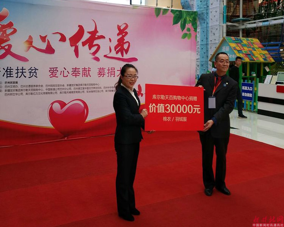 1月12日,新疆巴音郭楞蒙古自治州民政局、巴音郭楞蒙古自治州文明办、巴音郭楞蒙古自治州志愿服务联合会在新疆友好集团库尔勒天百购物中心开展精准扶贫爱心奉献募捐活动,把来自社会上的一股股暖流传递给需要帮助的人。