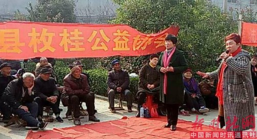 中国新闻时讯网徐州讯记者 陈宝红 )1月19日,江苏沛县枚桂公益协会举办年会,爱心志愿者分享过去一年在公益路上充满浓浓爱意的心得。