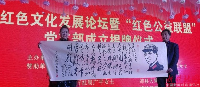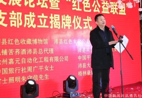 孟宪峰为红色文化联盟党支部委员会揭牌并发表讲话。原徐州市政协副主席张爱军、原沛县人大常委会主任贺本荣、原沛县政协副主席、沛县关工委主任闫淑芹、 县委党校校长李锦芬、团县委书记赵丹宇、张寨镇党委书记高立根、沛县广电传媒中心主任尤志峰等领导到会表示祝贺!