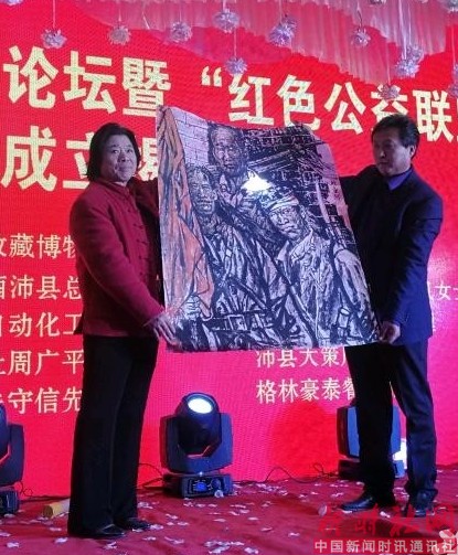 揭牌仪式后,国家级非遗传承人、中国著名焦墨画画家马培童向联盟负责人赠送了创作的作品,志愿者代表表演了丰富多彩的文艺节目。