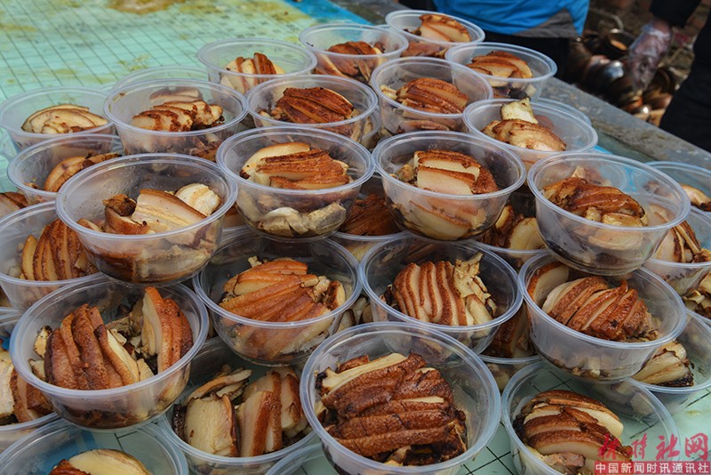 灶台设在相邻的另一个小院。五口直径超过一米的大锅支在院落中央的空地上,众多村民都在忙碌着各自的工作。厨师们用大铲翻炒着美味的菜肴,其他村民烧火、切菜、盛菜、端菜,各项工作都在紧张有序地进行,空气中到处都飘荡着香味,弥漫着快乐。
