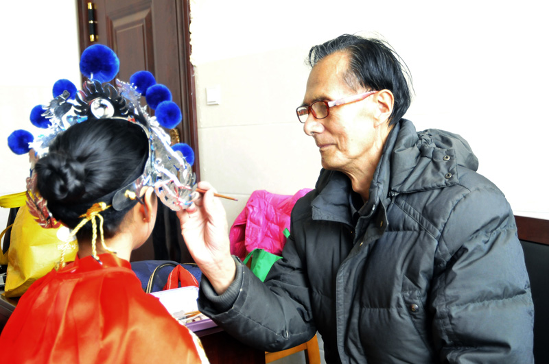 幕后功臣司老师,他给小明星们化妆、做造型,还要兼任乐器师。