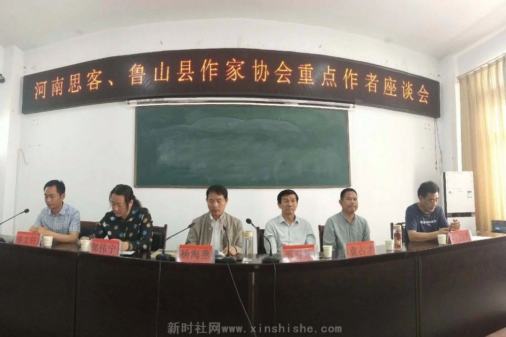 中国新闻时讯社河南讯:(记者陈运发 叶剑秀)5月16日上午,河南思客和鲁山县作家协会在县文化活动中心二楼会议室联合举行鲁山重点作者座谈会。《河南思客》创建人、主编杨海燕,鲁山县政协副主席、县炎黄文化研究会会长邢春瑜,平顶山市民协副主席袁占才,县文联党组书记、主席郭伟宁,副主席晏文轩,鲁山作协主席叶剑秀出席座谈会。