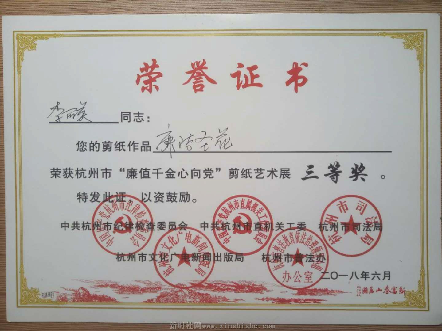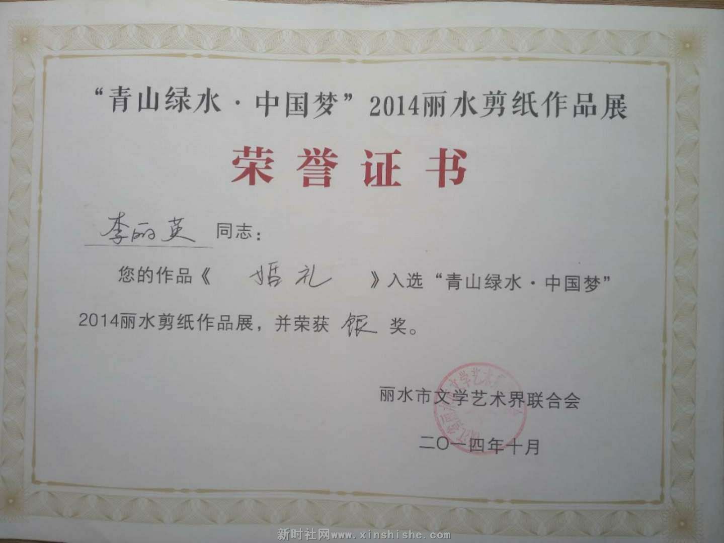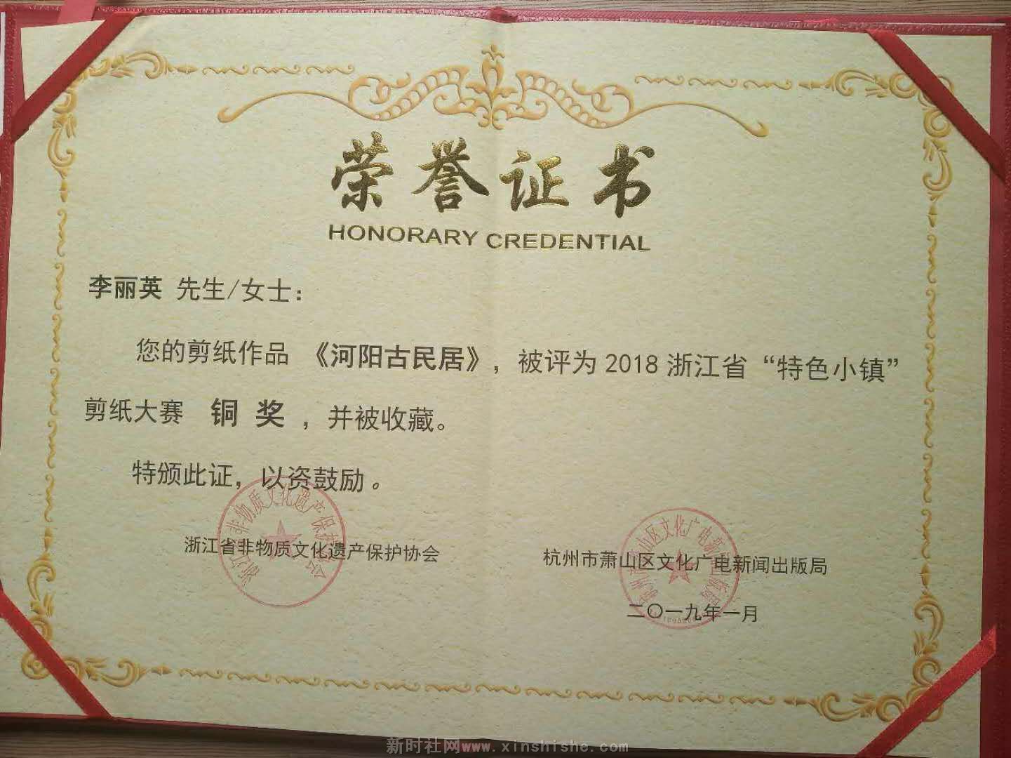 民间剪纸的“非遗”传承人李丽英,其剪纸作品才华横溢,美不胜收。其主要作品《一带一路伟大征程》.《缙云戏曲剪纸》.《特色小镇河阳古民居》等优秀作品人物造型优美,建筑古朴逼真,山水花鸟栩栩如生,手法线条流畅,具有独特的艺术魅力,多幅力作在全国.省.市专业艺术大赛中获奖,在国际文化友好交流中,她的作品还收到泰王国旺猜亲王签发的获奖证书。