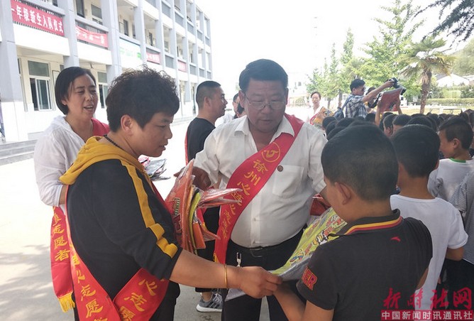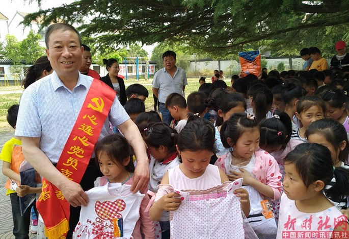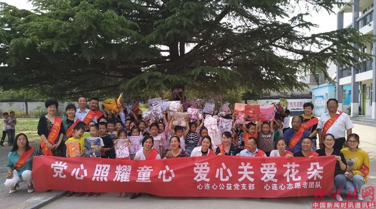 中国新闻时讯网徐州讯(通讯员 丁修武、张爱华、孔令喜 记者 陈宝红)“六一”儿童节前夕,徐州市“两新”组织云龙区党工建指导员张爱华、丁修武携手云龙区心连心公益党支部和心连心志愿者团队一行16人,来到贾汪区紫庄镇岐山小学开展庆六一“党心照耀童心,爱心滋润花朵”关爱贫困儿童及留守儿童捐赠活动。