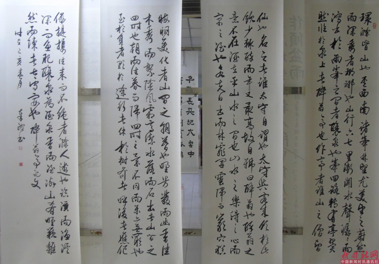 本次书画邀请展由临淄区文联、区委老干局、区文化和旅游局、区文化馆主办,名仕庄园协办,临淄书法家协会承办。书画展以“歌颂祖国、歌颂党、歌颂人民”为主题,邀请临淄、青州、广饶、临朐周边区县50多位书画家,从书写毛泽东诗词入手,创作楷书、行书、草书、隶书等书法作品100多幅。