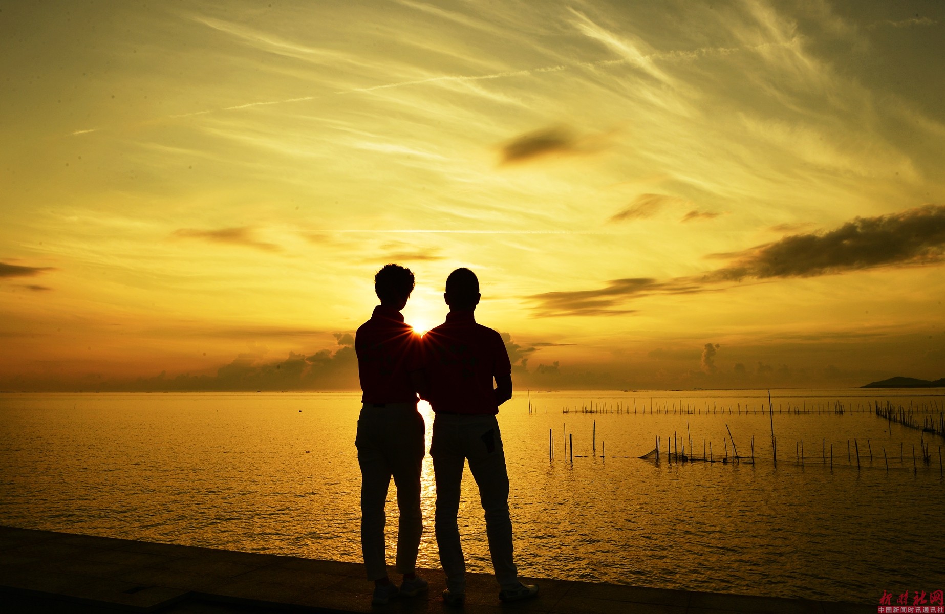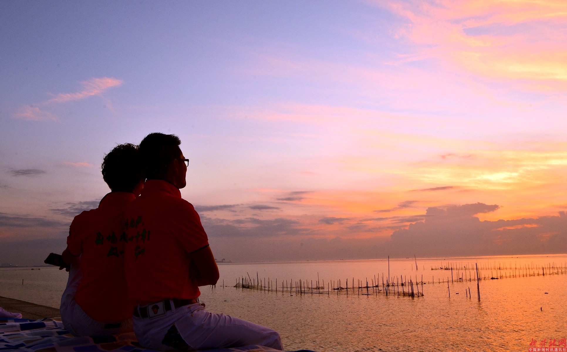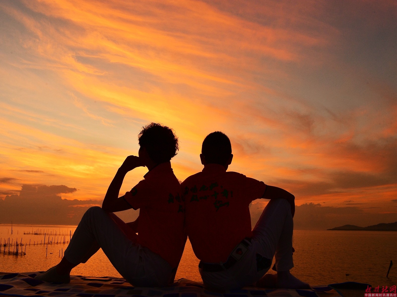 这对夫妻,风雨25年走过,今天是他们的25年结婚纪念日。凌晨五点穿着情侣装来到了海边,等待日出。