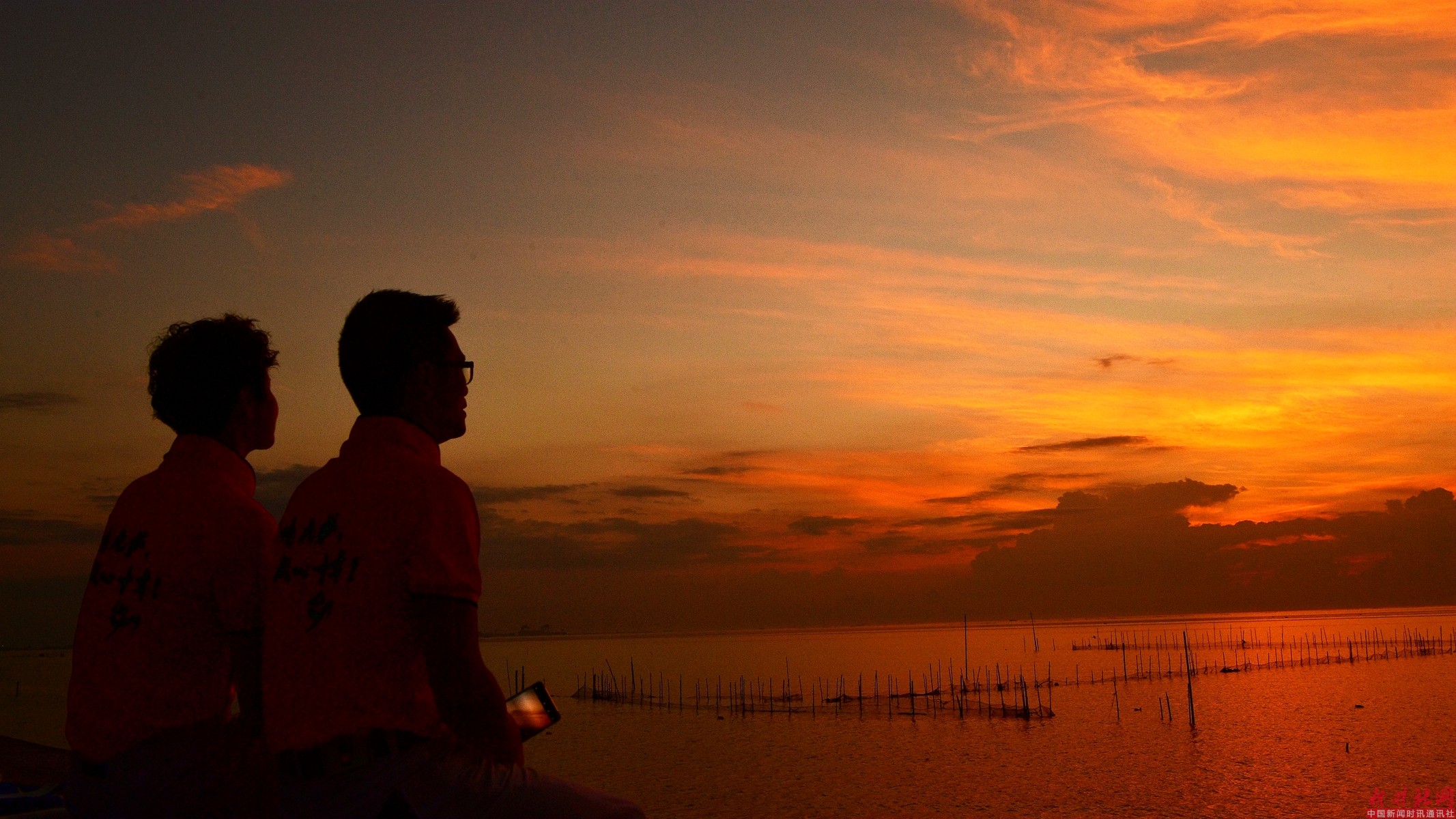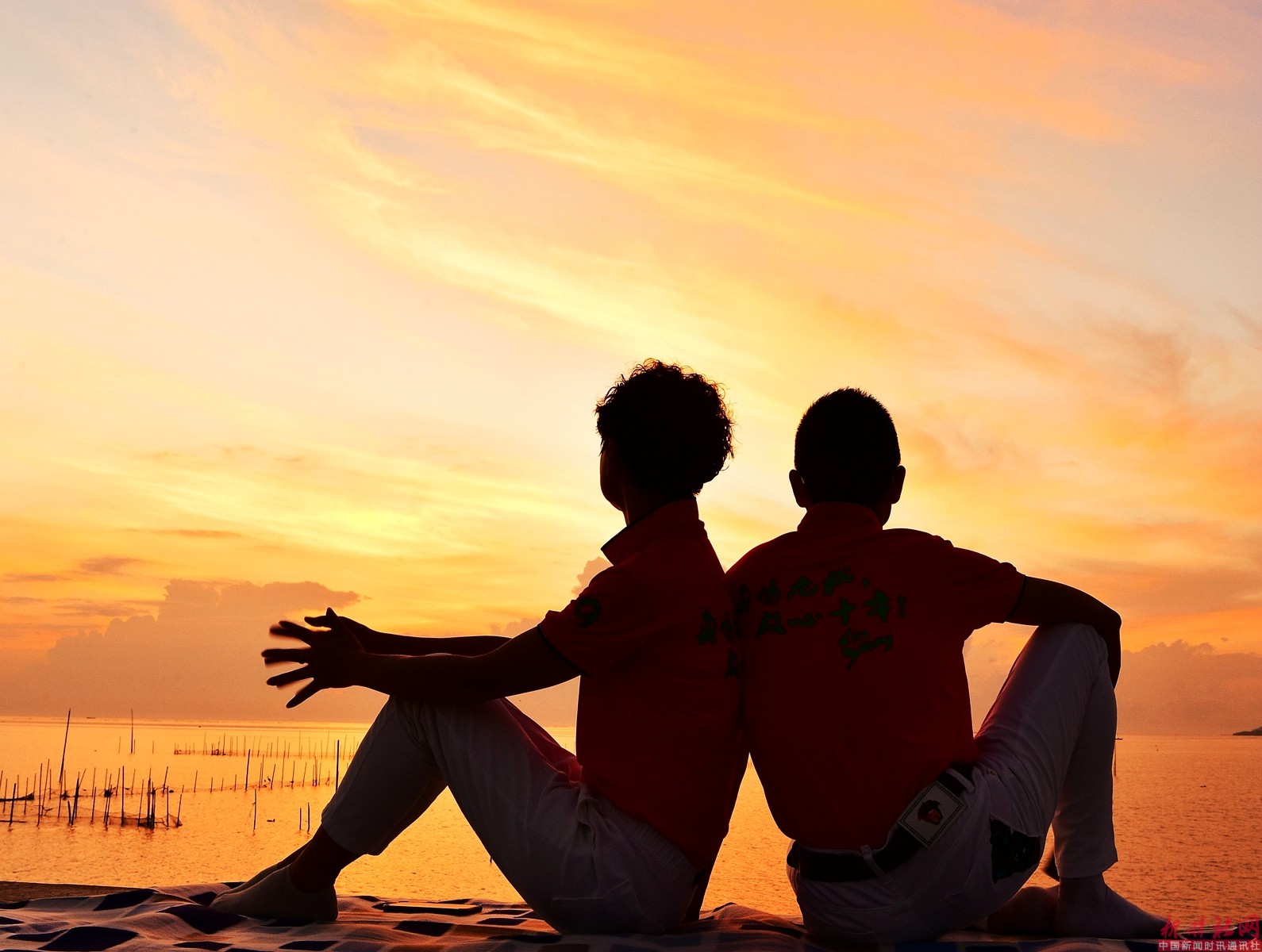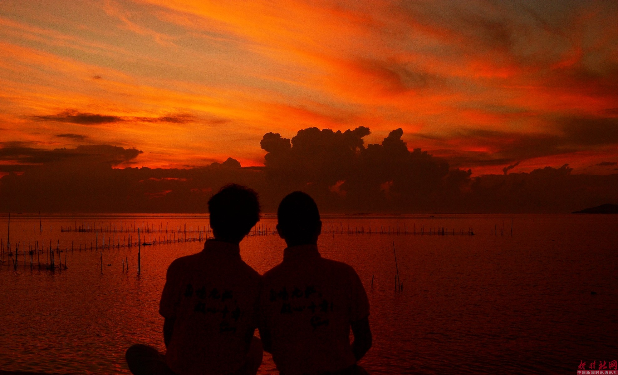 这对夫妻,风雨25年走过,今天是他们的25年结婚纪念日。凌晨五点穿着情侣装来到了海边,等待日出。