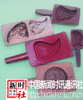 在广东潮汕客家地区,大凡大户的人家居家中.都保存有几种款式的粿印模。这些粿印于每年四时八节.酬神社日.用面粉.糯米制作各式的糕点.粿品祭祀神明!而随着塑料制品的普及、古老而富有手工工艺的木刻粿印越来越少:人们喜欢选购价廉的塑料粿印了!(新时社 特约记者 张耿裕)