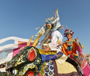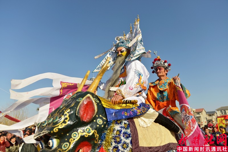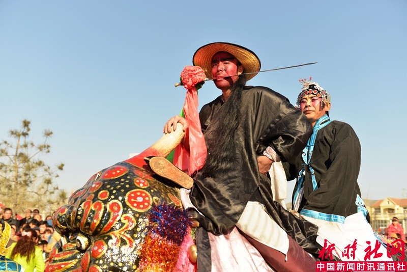 “走兽高跷”是山西稷山县清河镇阳城村庙会活动中的一种独有的表演形式。它盛行于清朝雍正初年,至今已有300多年的历史。“走兽高跷”是由两人表演的连体高跷,由兽头、兽身、表演人员组成,高跷表演者脚绑木跷,腰缚兽皮,前系兽头,上身扮演与之相应的人物,组成一组造型。表演时两人足踩高跷同演骑兽状,按曲牌节拍行走。每逢闰年正月廿九,在为祭祀火神而举行的仪式上作为其中的一种民间演艺活动,意为驱邪避妖,战胜灾难。