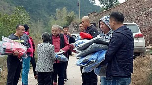 2016年10月9日农历九月初九,重阳节。北京西商国际学院,佛教研究委员会,赵小将院会长,带领学员去山区给贫困老人送去温暖