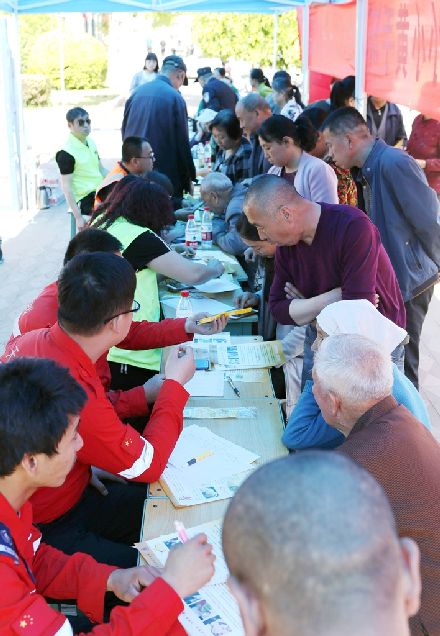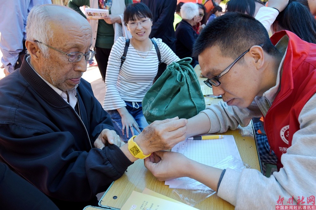 5月6日,由山西天龙救援队汾阳分队和中国人口福利基金会发起的”小小黄手环,照亮老人回家路”义务捐赠活动在汾阳西街中心公园举行。