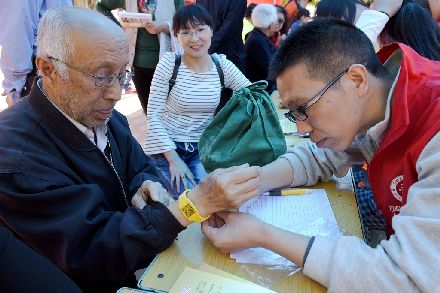 活动现场,工作人员为广大群众讲解手环的用途和相关事项,并为过往路人发放宣传单,还有的工作人员为前来申领手环老人进行信息登记、发放并指导使用,当天上午就发放180多个,为老人回家搭建爱的桥梁。