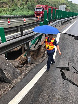 8月22日14时20分许,五保高速忻州到杨家湾段275km+750m处,出现路面下沉局部塌方随时有扩大塌方的危险,目前民警正在现场进行疏导安全防护。现已关闭辖区杨家湾,保德,窑洼等收费站入口;辖区神州,岢岚,黄道川收费站禁止保德方向车辆驶入高速;对已驶入的车辆在保德方向黄道川,神州收费站俩个分流点进行分流;忻州方向在事故现场前借中央护栏调头分流至窑洼收费站驶离高速。请广大媒体司机朋友