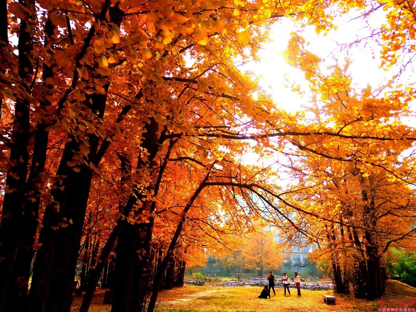 至此我喜欢银杏林初冬的满园金色,魅力的色彩更吸引着各地来客来欣赏在此留影。