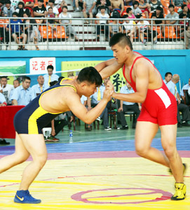 在忻州跤史上,名人辈出,老跤王、新中国体育开拓者、国家非遗摔跤挠羊传承人、跤坛一代宗师崔富海,跤乡英雄大玉明,无敌跤王杨汉荣,一代雄杰薄建伟,铁塔金刚梁磊,抱腿神人张毛清等都是忻州当地风靡一时的神话般人物。