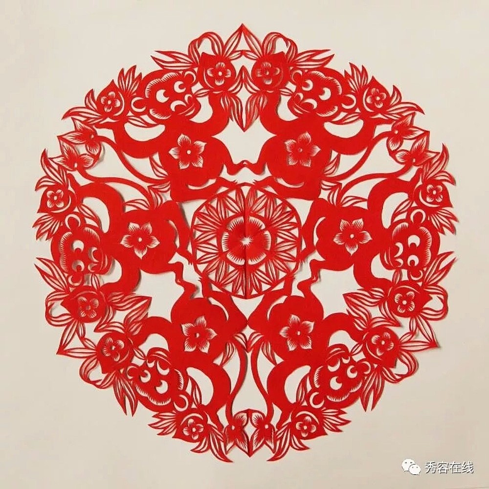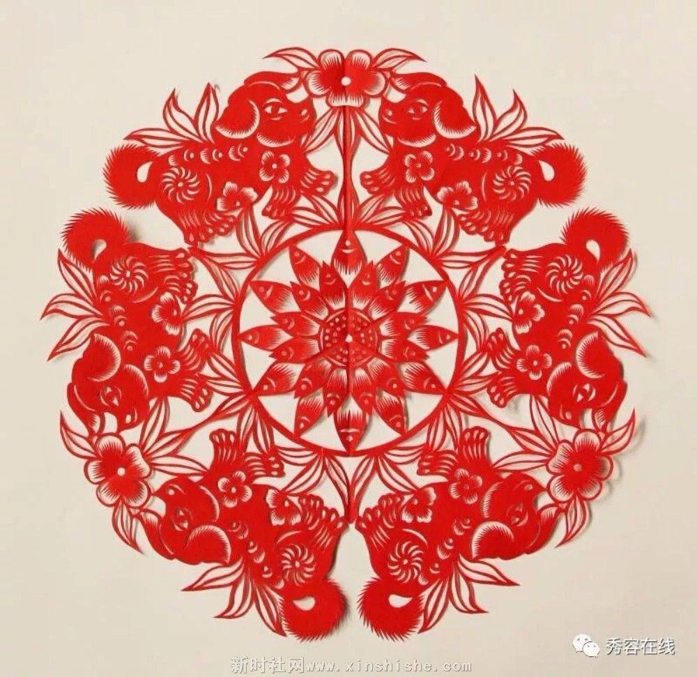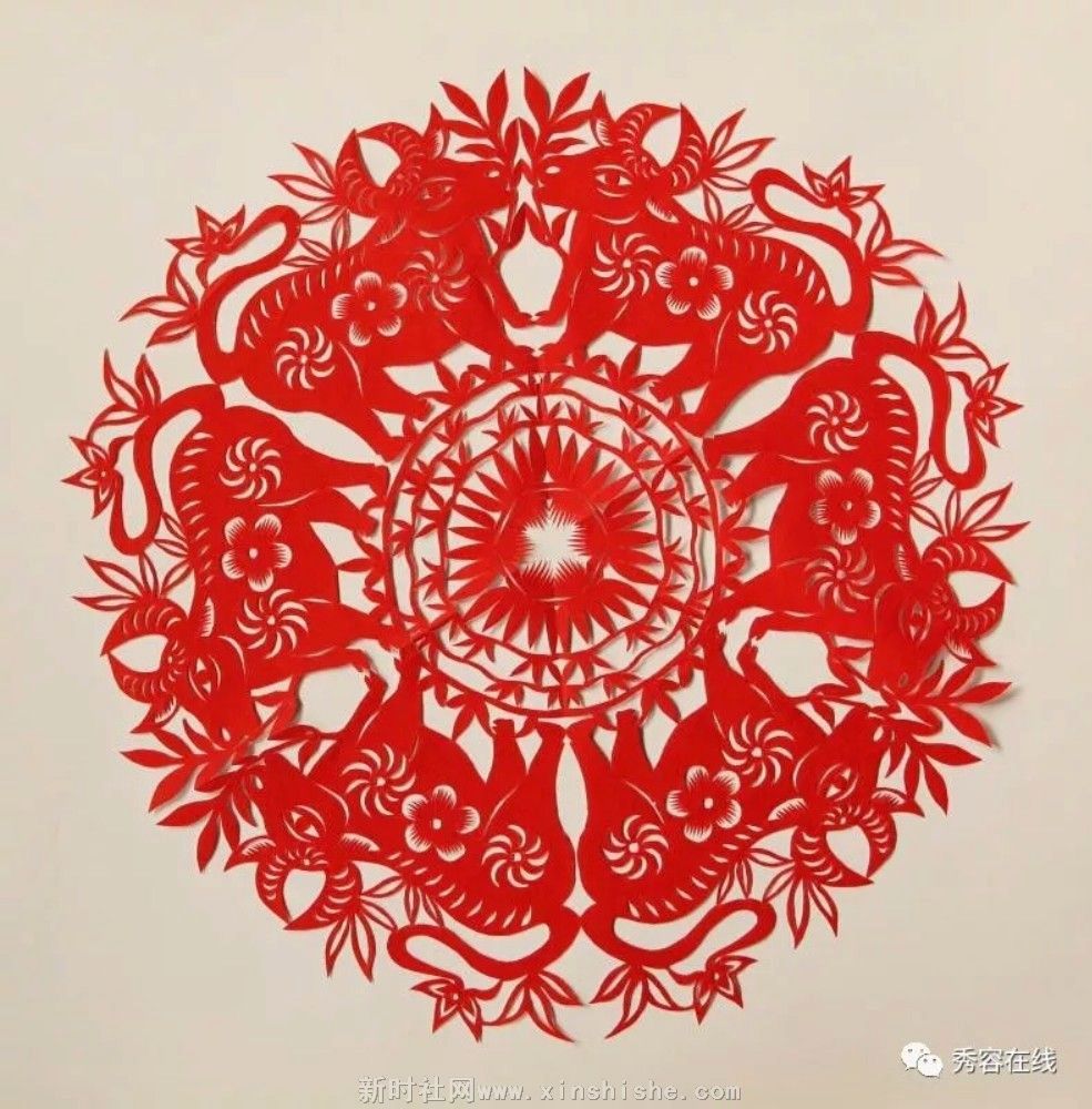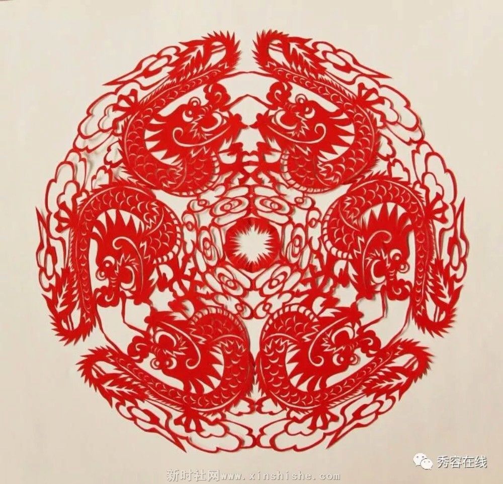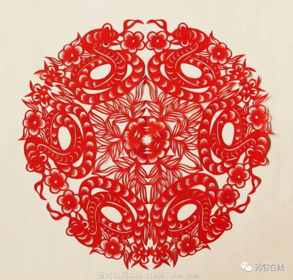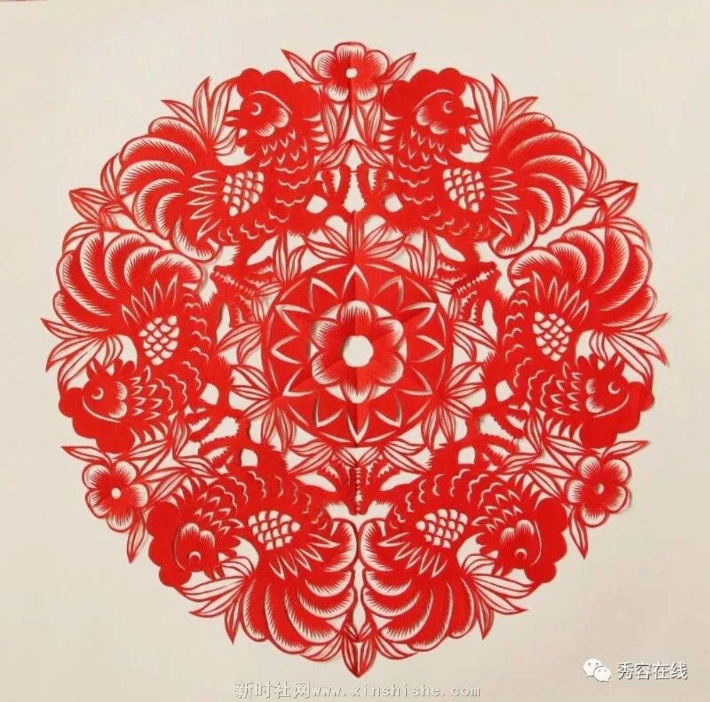 殷润清,女,山西省美术家协会会员、山西省工艺美术家协会会员、忻州市美术家协会理事、忻州市民间文艺家协会会员、忻府区民间艺术家协会负责人。 剪纸是古老的汉族民间艺术,春节期间,在中国广大的地区都有贴剪纸的传统。 剪纸团花作为剪纸的一种布局格式。呈圆形花样、四面均齐。这种装饰格式在剪纸中尤能显示其优异性,由于纸张可折叠,如对角折叠二次、三次、四次不等,便可剪出四面均齐的团花。我国最早的剪纸实物,新疆出土的北朝时期剪纸,即为团花格式,如“对鸟团花”、“对猴团花”、“八角形团花”、“忍冬纹团花”、“菊花纹团花”。可见团花格式是剪纸中最为古老的格式。
