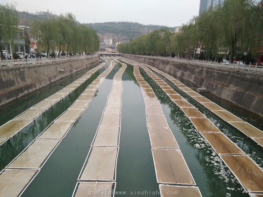 近几年,宜川仕望河河水污染严重。今年,县政府下狠心治理。采取铺膜吸油,打捞手段治理河污!