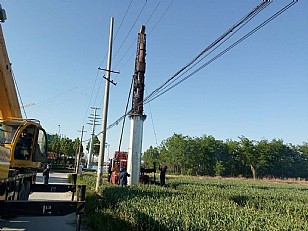 这是一组电网线路打桩,组立,架设线路的缩影。