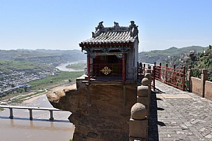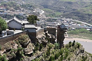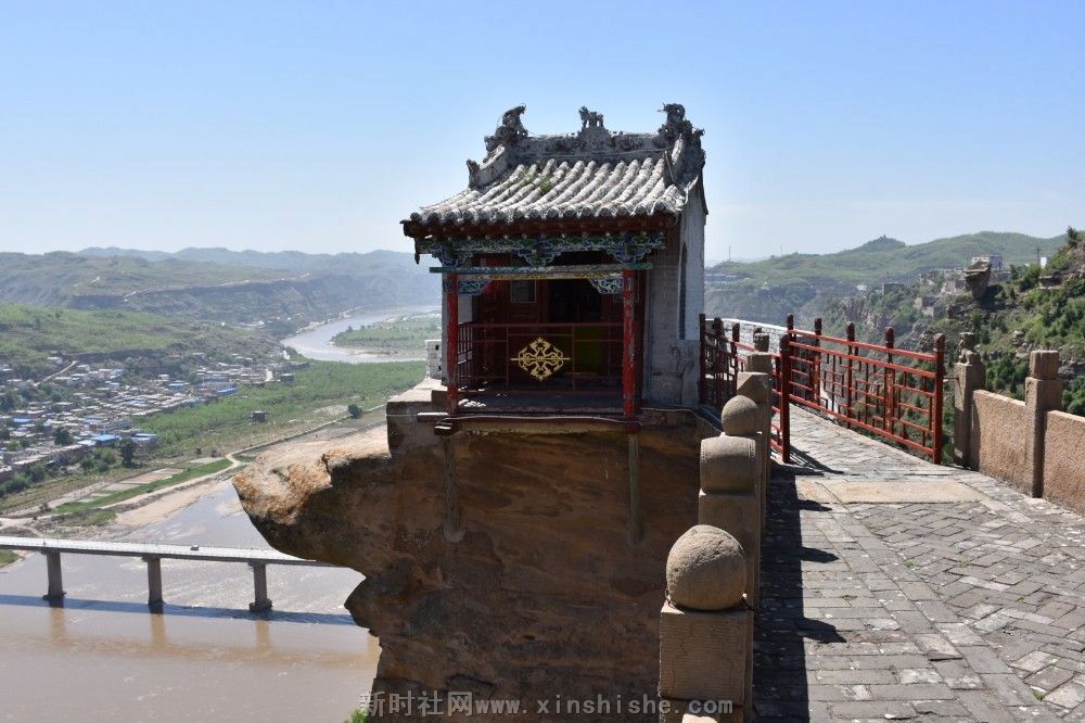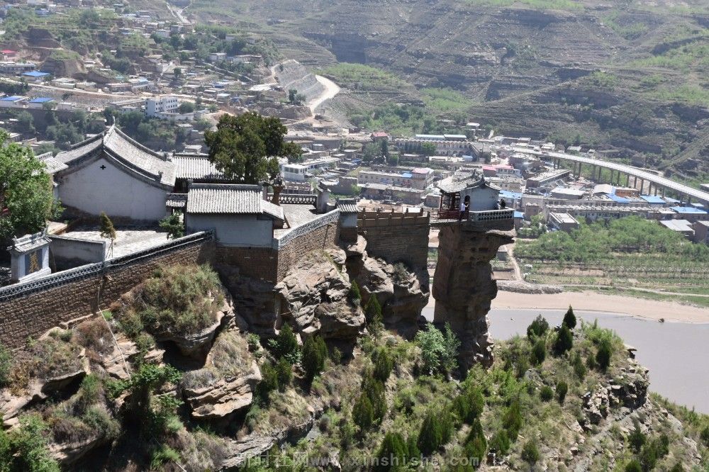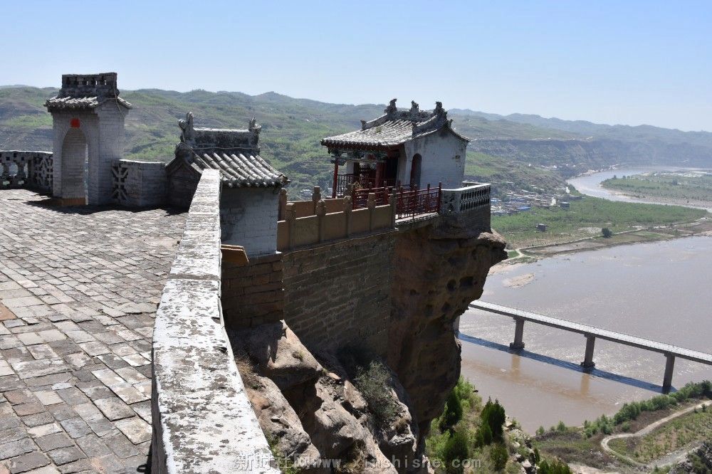 临黄河大桥橫贯东西,如龙卧波,寺庙亭堂跟石头城最外围的绝壁仅隔着