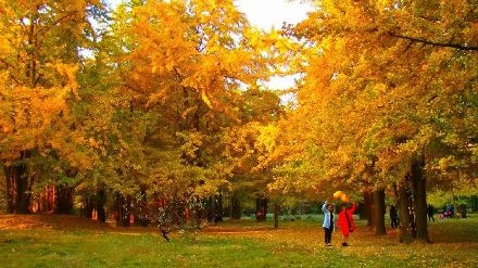 每年的秋天银杏林都会展现着迷人的金色,让人美不胜收。