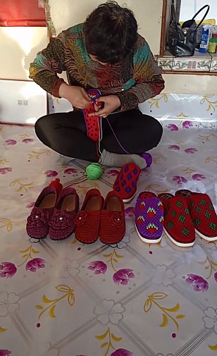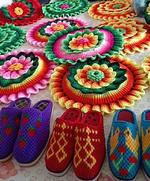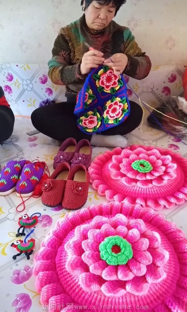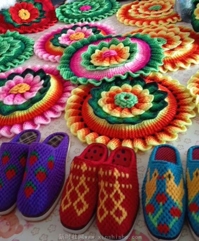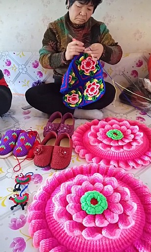 用七彩的颜色编织绚丽的人生,一双灵巧的双手编织出各色形状的作品,让人们爱不释手,不管是鞋子坐垫 不管是衣帽都来自农村巧手,这就是我们非物质文化遗产宝贵财富。