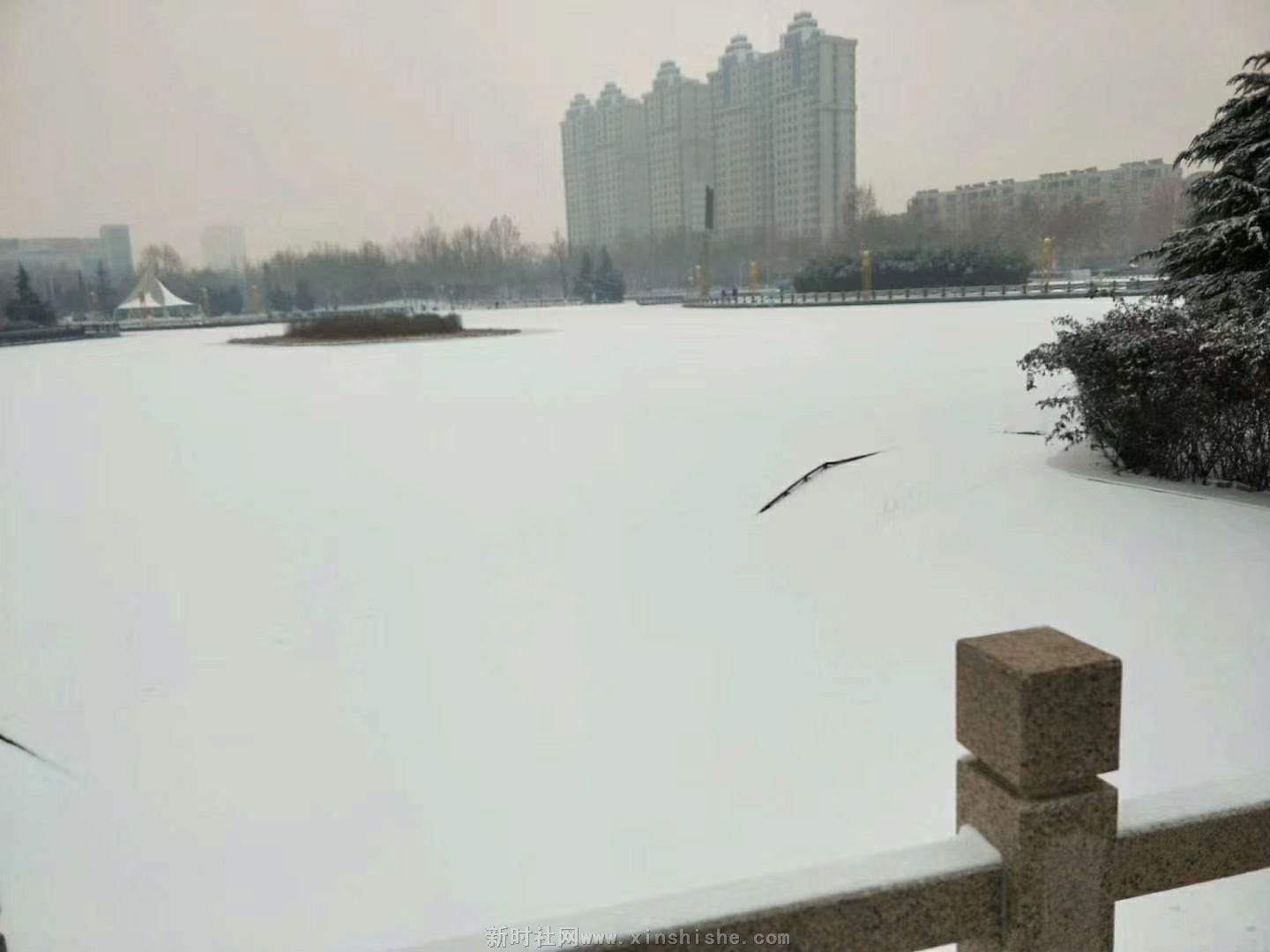 大县城居中的少海公园雪后的美景大家一块来养眼