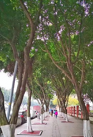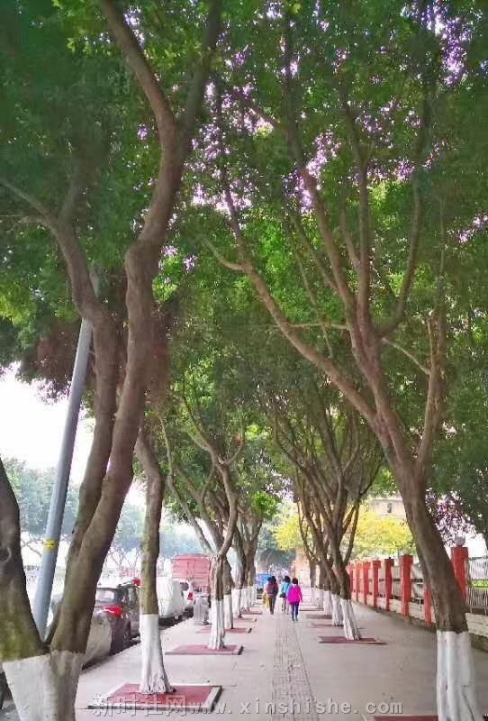 姹紫嫣红,闲庭信步门前公园路。
