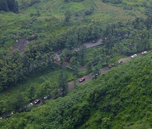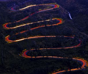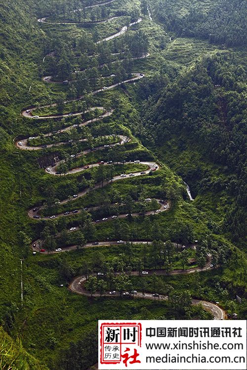 贵州晴隆县城南行500米左右,右边有一路口标识为24道拐观景台,拐上山道,前行一公里左右就来到观景台,当年的美军记者就是沿着滇缅公路来到这里,拍下了一张举世闻名的照片:65年过去了,这条昔日繁忙的战略交通线已经早已沉寂,清晨雾氤笼罩中的这条老路,仿佛还沉侵在睡梦中:对面山腰就是拍摄24道看着脚下盘旋的道路,时空恍惚。四十年代,倭寇进犯中原,这里行进着运送给养的道路; 但因特殊的历史原因和抗日情节,这里是是越野E族贵州大队黔西南中队车友们心中的圣地,170余辆车的车队川越这二十四道拐。