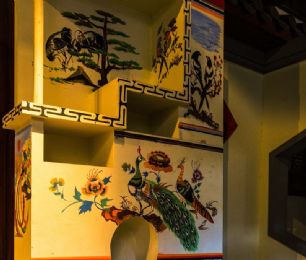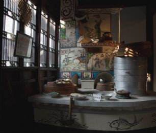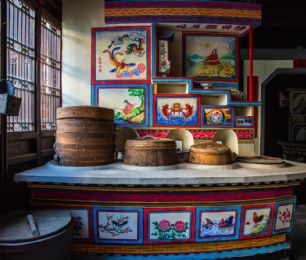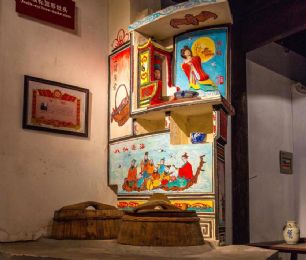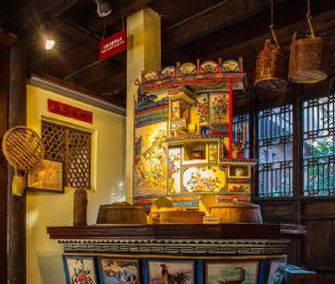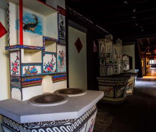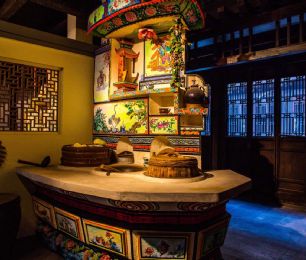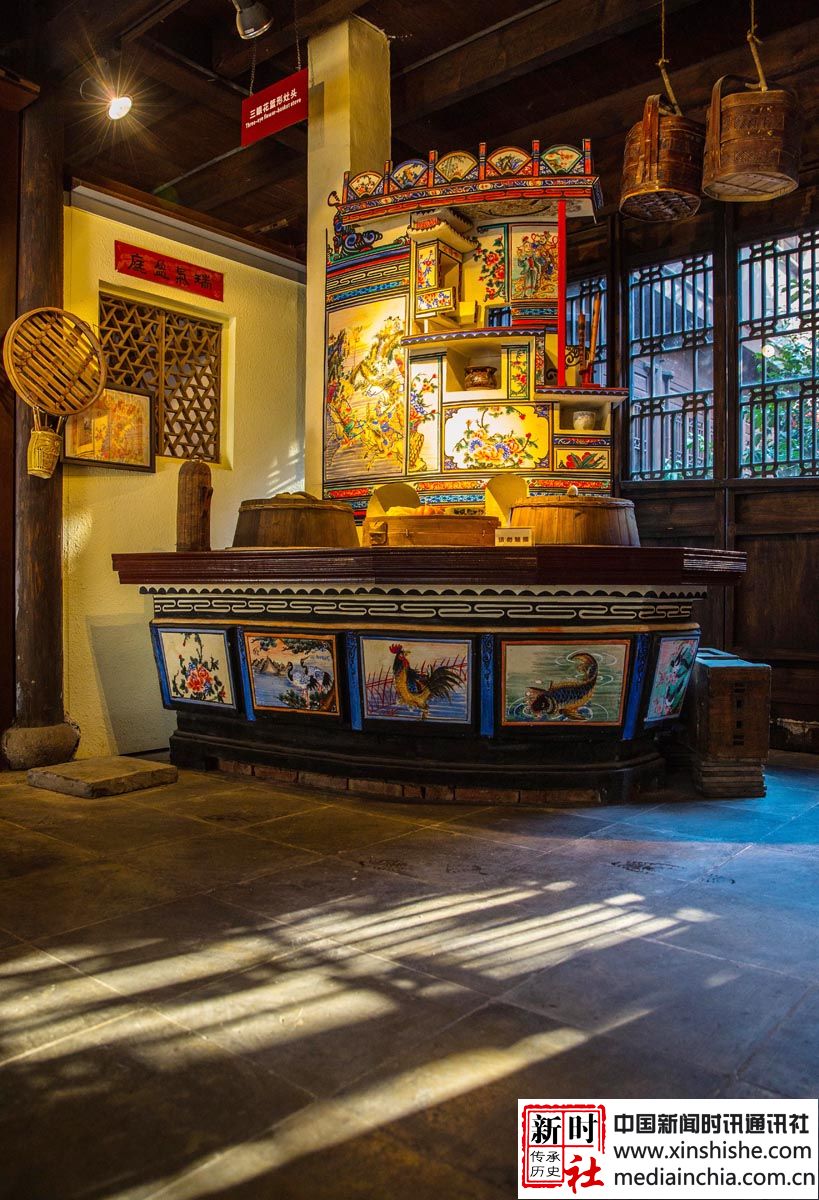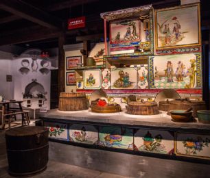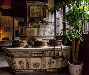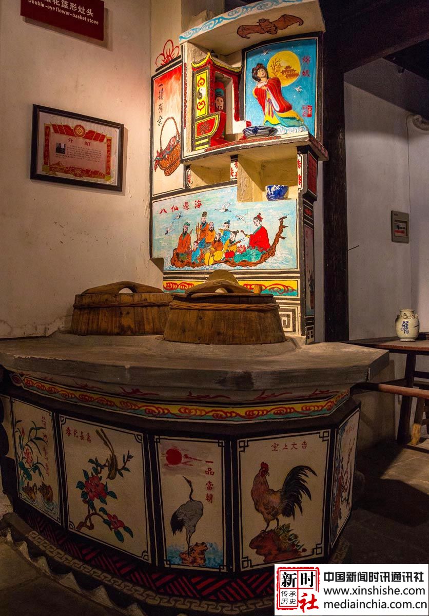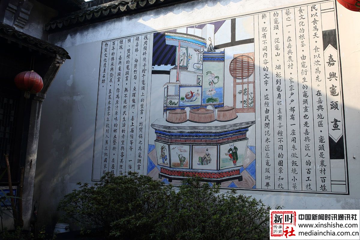 嘉兴灶头画:在嘉兴地区,灶头画是农村百姓食文化的根基。由灶衍生的灶头画也是嘉兴匠人的百工技艺之一。在嘉兴农村,家家户户都有一座用来做饭烧小菜的灶头,从灶山、烟柜到灶身豆花有各种不同的图案和纹饰,配有不同的内容文字。这种由民间泥水匠在灶头砌毕后用颜料徒手绘于灶头上的壁画,坊间称之为灶头画。福禄寿禧、梅兰竹菊、鱼跃龙门、喜上眉梢等等,一幅幅质朴的灶头画无不是乡民生活的希望与审美理想的体现。作为原汁原味的乡土文化艺术,在历经了百年的传承和发展后,于2010年被列入第三批国家级非物质文化遗产名录。