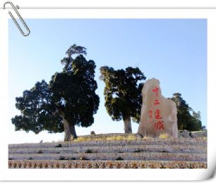 位于山西省临县曲峪镇正觉寺山梁上。指的是的12株古柏。据介绍,这12株侧柏为唐代种植,距今已有约1300多年历史。12株古柏株距均匀呈“一”字排列,犹如一座绿色长城,故称“十二连城”。1993年,省政府将“十二连城”列为全省首批重点保护古稀珍贵树木。这些古树最高的近20米,低的也有8米;胸径最粗者1.53米,需两人以上才能抱拢。