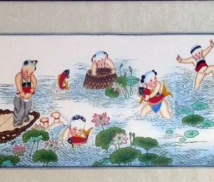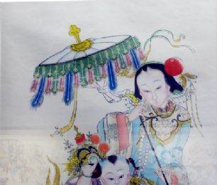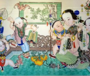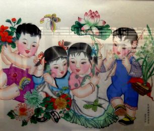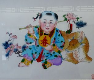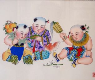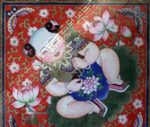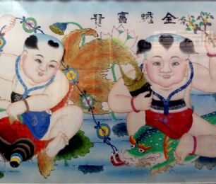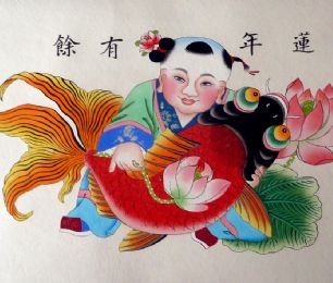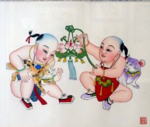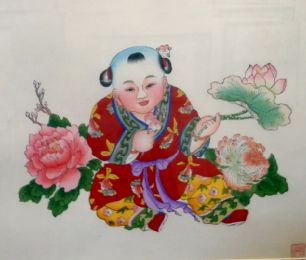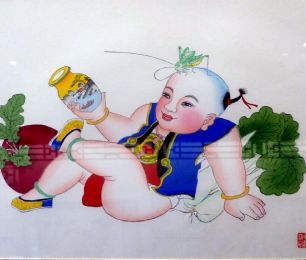 杨柳青木板年画起源于明代,距今已有400多年的历史,2006年被列入国家首批非物质文化遗产名录。杨柳青镇早在明末清初就已经成为我国重要的木版年画产地,有着“家家能点染,户户善丹青”的画乡美称。杨柳青木版年画历史悠久,采用木版套印与手工彩绘相结合制作手法,其造型方式和艺术风格汲取了中国工笔重彩画和民间版画的精华,笔法细腻,色彩艳丽,题材丰富,生动有趣,具有浓郁的地方特色。其体裁有贡尖、板屏、条屏、横三裁、屏对、炕围、门画、历画、灯画、斗方、格景、缸鱼、窗户纸、祖师神等;题材取材广泛,人间世俗生活无所不包,有神话故事、历史典故、小说传奇、仕女娃娃、戏出人物、师祖神祃、吉祥时样、博古花卉、风筝纸等约3000多种;制作工序主要有勾描、刻板、套印、彩绘、装裱等。