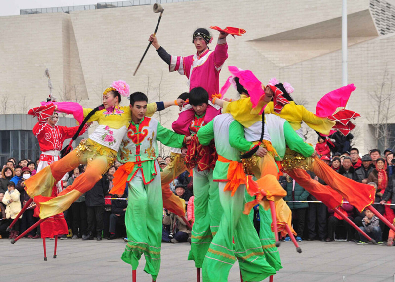 为迎接新年的到来,人民用民俗表演来庆祝喜庆。