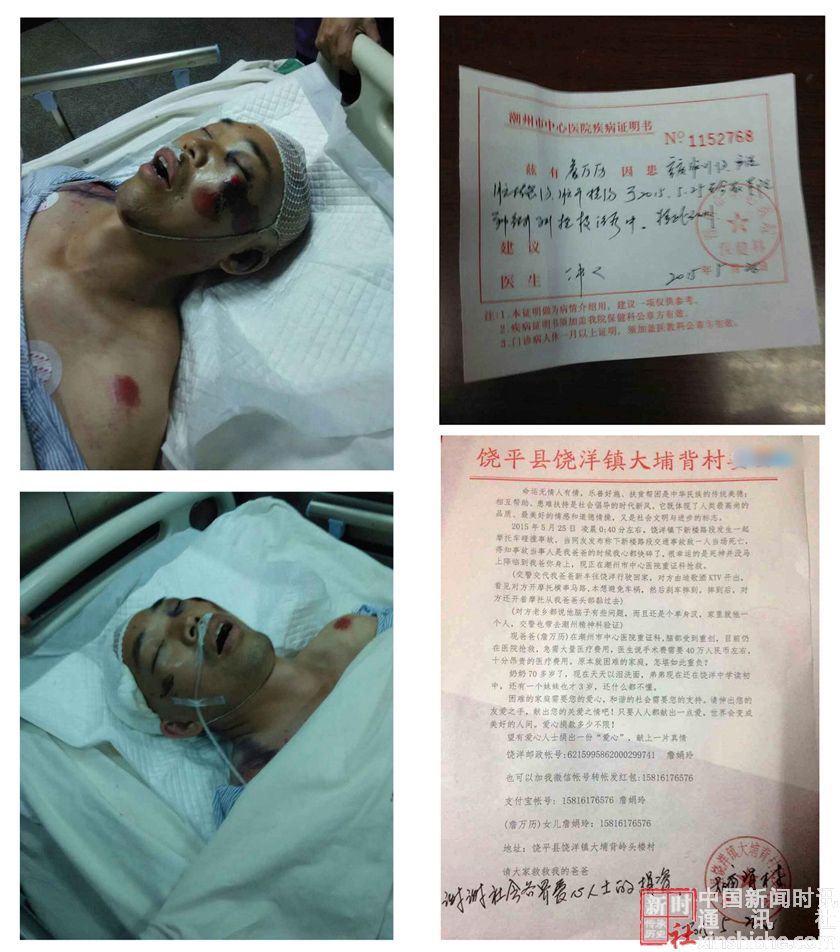现爸爸(詹万历)在潮州市中心医院重证科,脑部受到重创,目前仍在医院抢救,急需大量医疗费用,医生说手术费需要40万人民币左右,十分昂贵的医疗费用。原本就困难的家庭,怎堪如此重负?