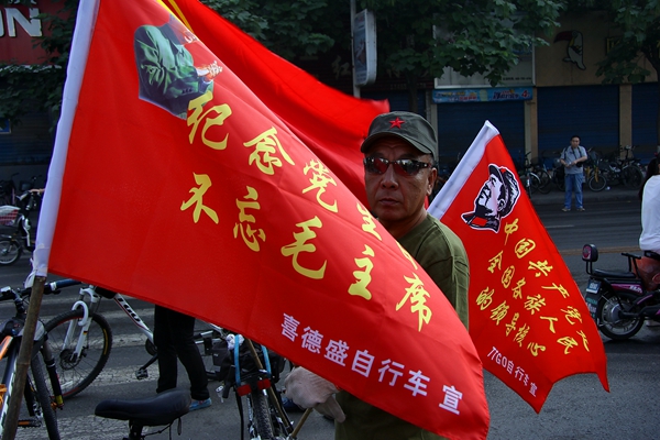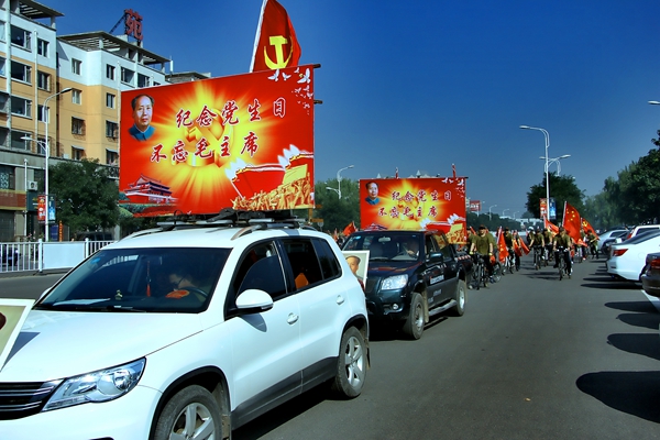 7月1日,是中国共产党诞生94周年,汾阳市民间团体举行了声势浩大的“纪念党的生日,不忘毛主席”为主题的纪念活动。