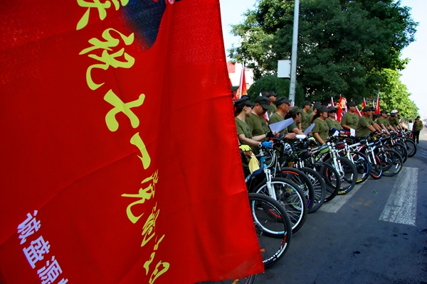 上午9时,参加活动的人员和车辆分别在汾阳文化广场、汾阳市政府门口列队,齐唱“没有共产党就没有新中国”,然后进行绕城骑行活动。