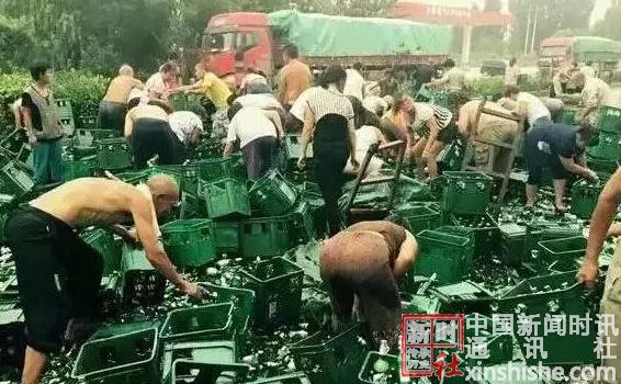 一位当时参与现场救援的人士说,这些啤酒为燕京牌玻璃瓶装,每12瓶一箱。事故发生后,车上的啤酒有三分之二散落在了路面上。救援过程中,附近一些村民陆续赶过来,有骑电动车的,有骑三轮车的,还有步行的。他们翻找没被摔坏的整瓶啤酒,有的干脆爬上货车,搬走整箱啤酒。十几名民警、协警及救援人员根本无法控制局面。到最后,啤酒所剩无几。