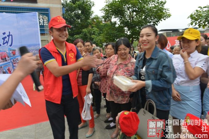 现场互动猜谜语遂宁义工把奖品到群众手里