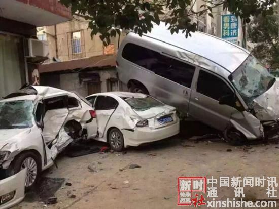 经过现场勘查,当时事故的情况还原如下。肇事的江淮牌小面包车经过事故地点附近的一个弯道时,偏离了行驶路线,先是碰撞了道路左侧的路标指示牌后又撞倒路旁行道树,然后碰撞了停在厂房边的大众牌轿车,之后它拖着这辆大众牌轿车行驶了10米,以多米诺骨牌的行驶,连续碰撞了路边的另外一辆广本轿车和两辆二轮助力车。最后在撞击路侧的厂房后,甩尾爬上了该厂房的屋顶。