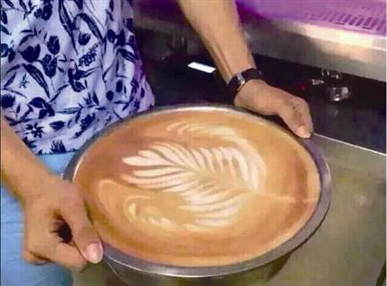 这时老板娘还好心提醒说,你确定吗?很大杯哦。朋友保证一定喝得完,只是没想到咖啡端上来后,他差点没有晕倒。因为这杯拿铁,竟然装满一整个不锈钢盆!
