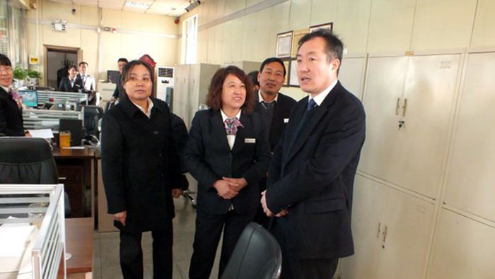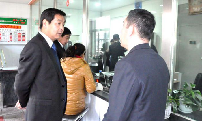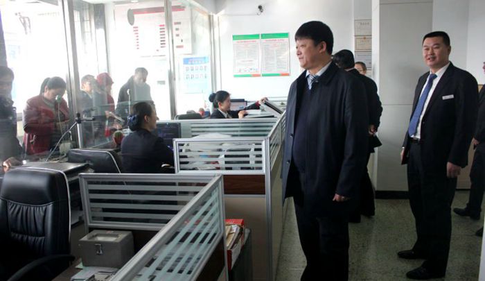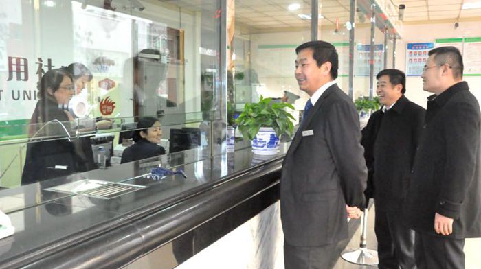 联社主任温永生在与网点负责人交流的同时,不忘与员工之间的互动,虽是隔窗问侯,但是每位员工都流露出了高涨的工作积极性,使大家找到了2016年工作新的起点。