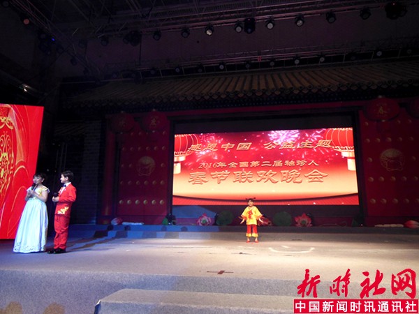 在春节联欢晚会的活动现场,来自平遥龙在天皮影艺术团与北京残疾人皮影艺术中心的100余名袖珍演员们展示着各类绝活儿和才艺:皮影戏、杂技、魔术、舞蹈、小品等表演形式五彩缤纷、多种多样,其中还有《猴王闹天宫》、《群猴争霸》等新编皮影舞台剧与今年的猴年息息相关,赢得了现场领导和首都各界群众的阵阵热烈掌声。